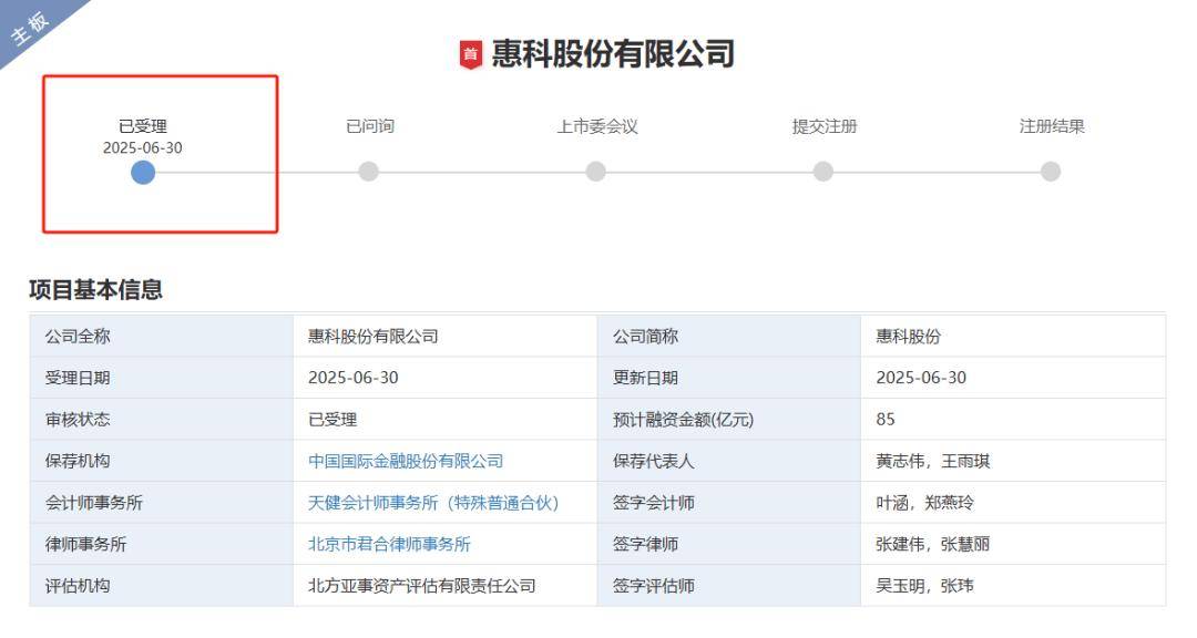 6月30日,深交所官网信息显示,惠科股份有限公司(简称“惠科股份”)IPO申请已正式获得受理。最新招股书显示,惠科股份此次IPO拟募资85亿元,25亿元投建于长沙新型OLED研发升级项目、30亿元投资于长沙Oxide研发及产业化项目、20亿元投建于绵阳Mini-LED智能制造项目、10亿元用于补充流动资金及偿还银行贷款。